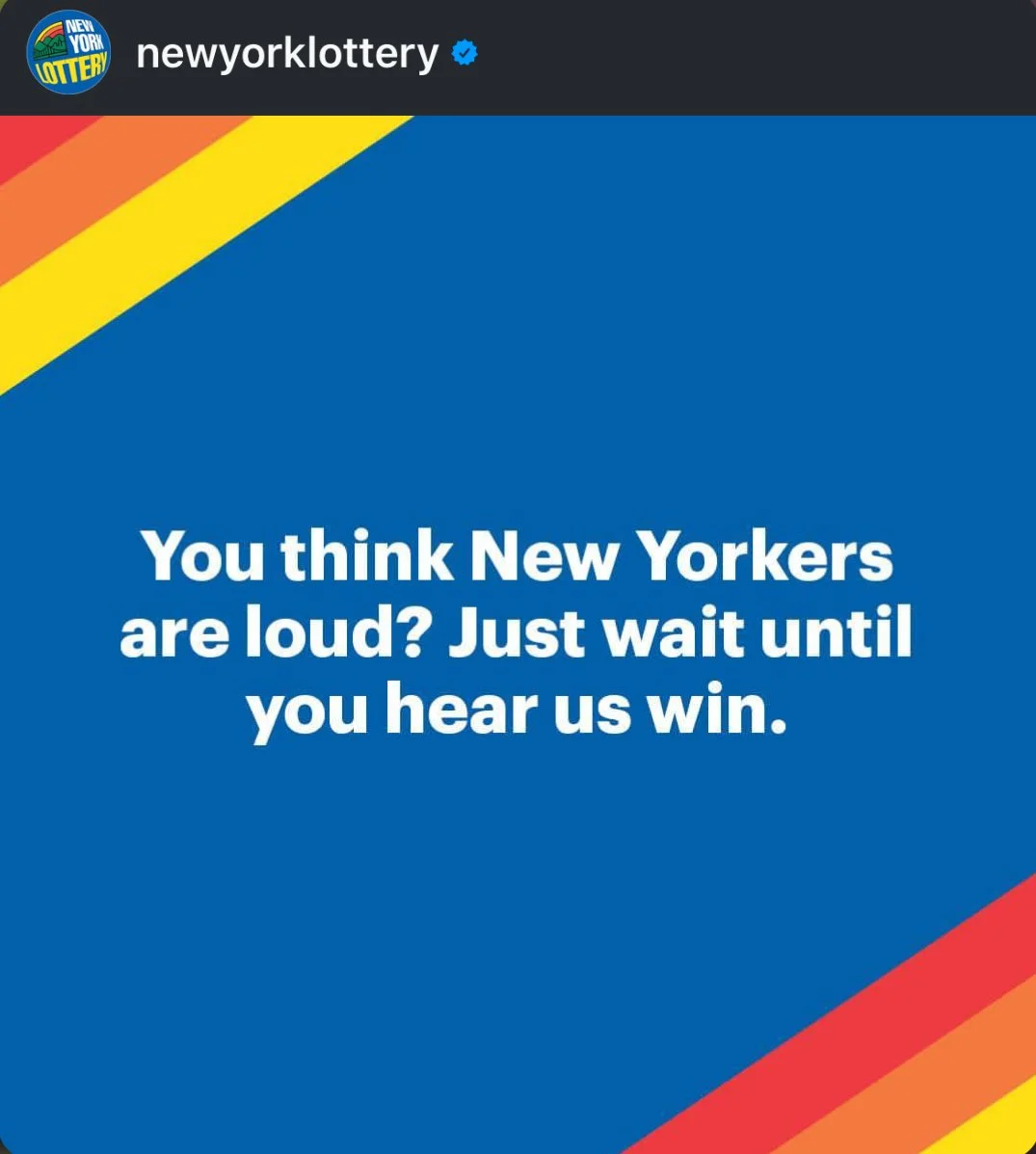 As a copywriting intern at McCann New York, I played a role in crafting social posts for the New York Lottery. I helped bring the brand's playful, witty, and celebratory voice to life through post copy.